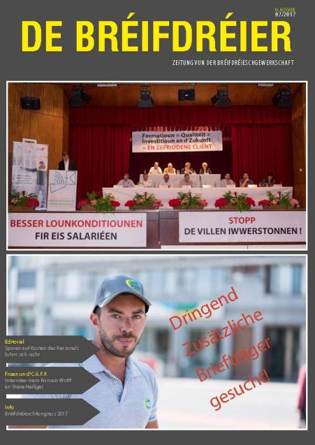 Editorial: Sparen auf Kosten des Personals lohnt sich nicht Froen un d'CGFP: Interview mam Romain Wolff an Steve Heiliger Info: Bréifdréieschkongress 2017
