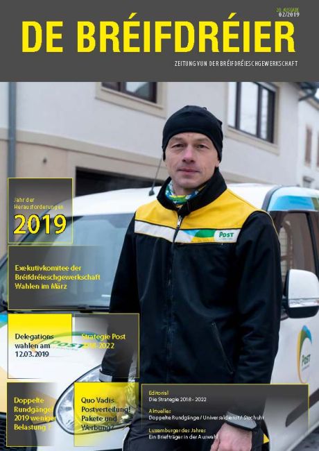 Editorial: Die Strategie 2018 - 2022 Aktuelles: Doppelte Rundgänge / Universaldienst / Stechuhr Luxemburger des Jahres: Ein Briefträger in der Auswahl