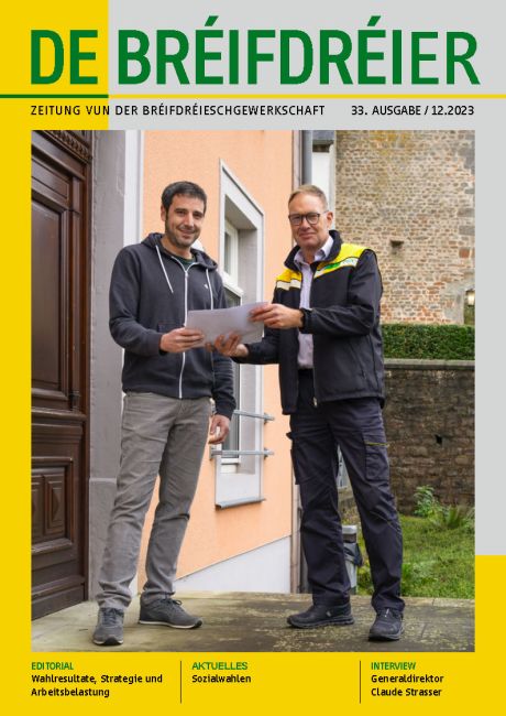 Editorial: Syndicat des P&T Klarer Gewinner der Sozialwahlen! Bréifdréieschkalenner: 100 Joer Mutualitéiten zu Lëtzebuerg Interview: Wirtschaftsminister Lex Delles